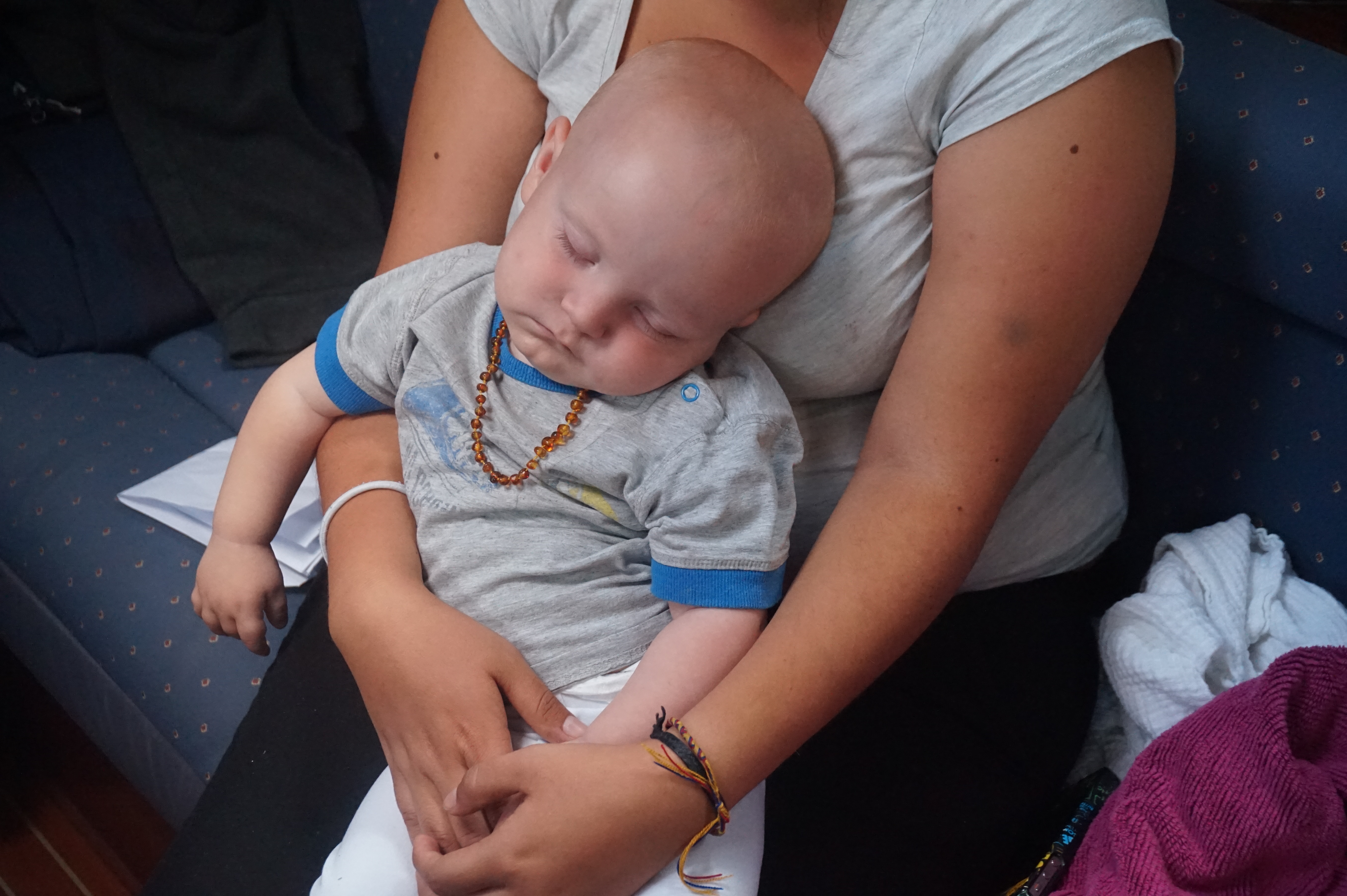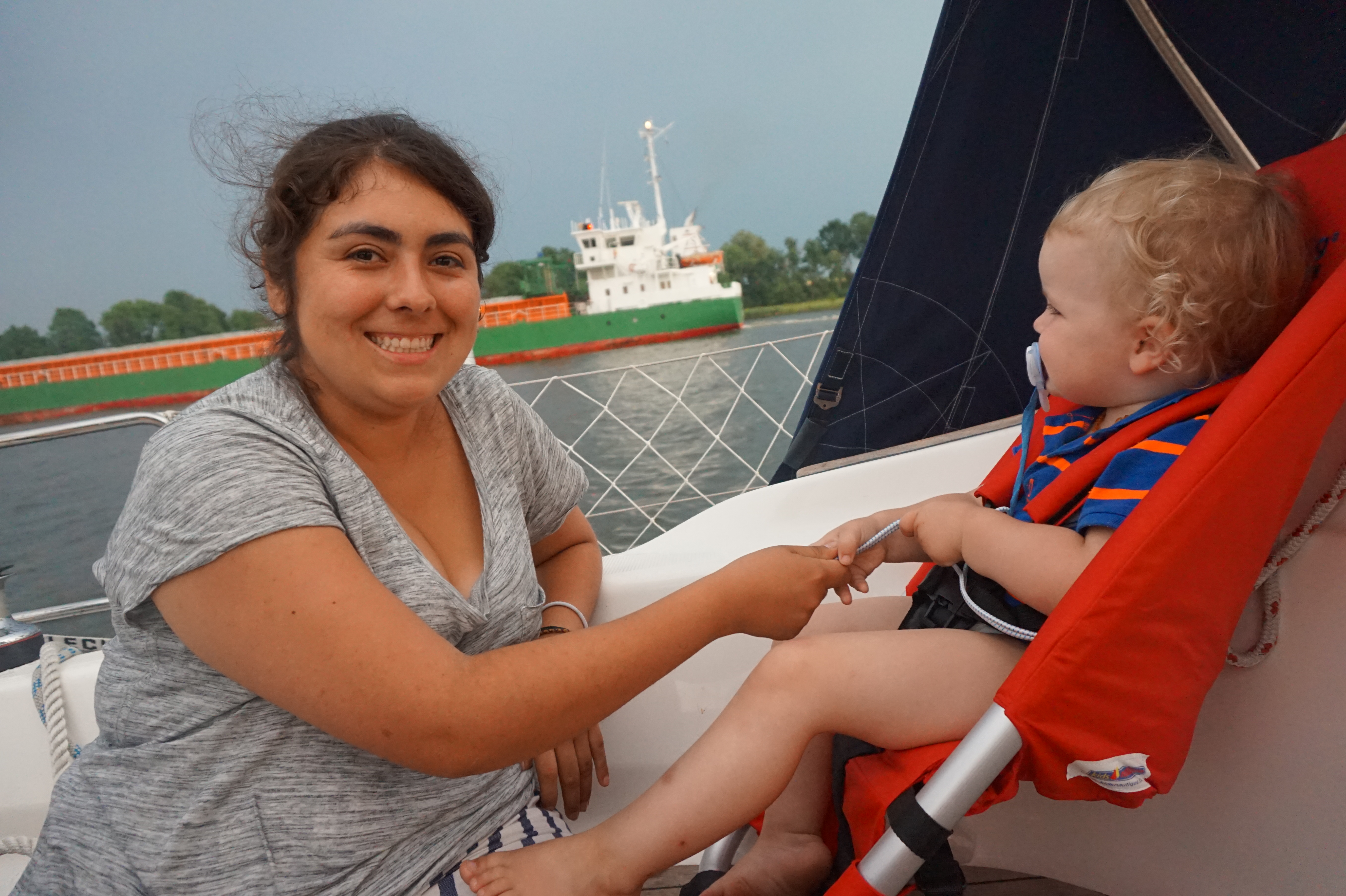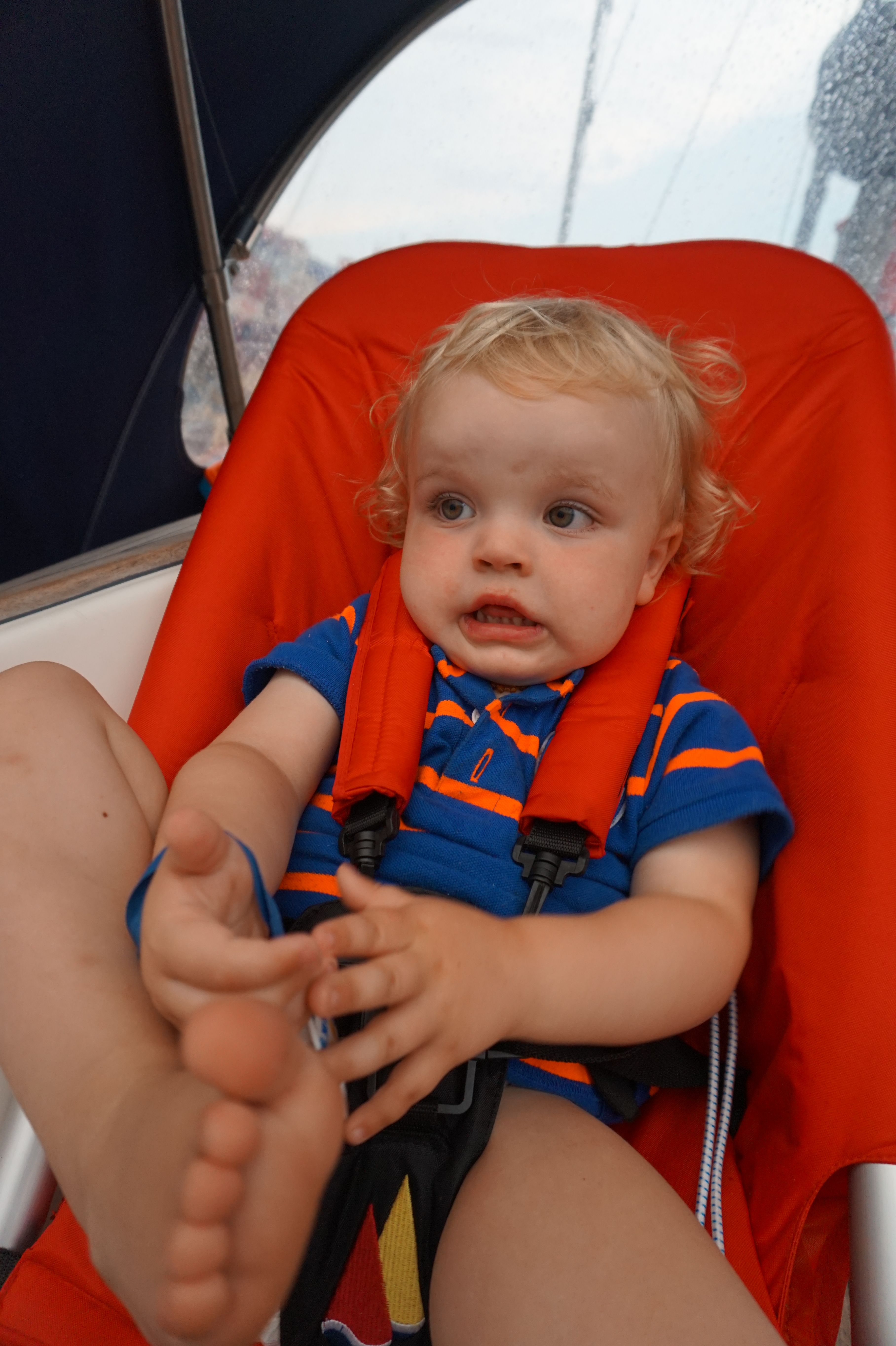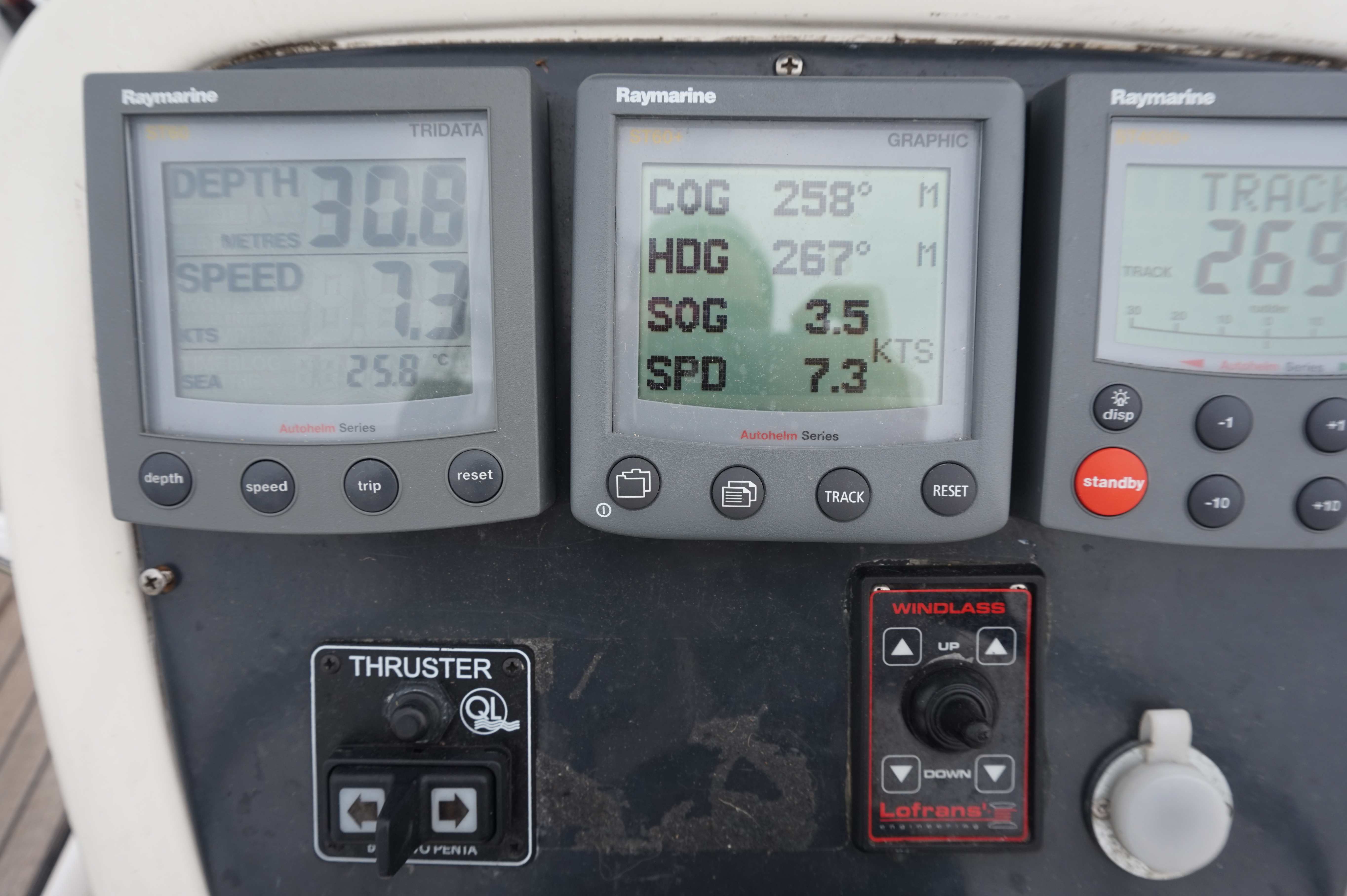 So schön wie ich es gestern fand, so entnervt bin ich heute, ehrlich gesagt sind wir genervt. Die Nacht sitzt uns in den Knochen. Dadurch, dass die Kinder die Nacht zum Tag gemacht haben, war der Wachtwechsel eher beschwerlich, denn in der Zeit, in der ich schlafen sollte/wollte, war ich mit den süßesten aller Nervensägen beschäftigt, so dass ich Rüdiger nur zwei Mal und das auch nur kurz, einmal eine Stunde und das andere Mal für fast drei Stunden, ablösen konnte. Also Schlafmangel auf beiden Seiten pur. Dann noch totale Frustration. Egal in welche Richtung die Sophia ihre Nase streckte, aus genau dieser pfiff ihr der Wind entgegen, und immer wieder diese blöde Strömung. Also alles in allem, permanentes Motorbrummen, unbeleuchtete Boote mit in der Nacht, Schneckentempo, der Autopilot hielt nicht und zu meinem allergrößten Unmut: ÜBELKEIT. Nein, wir erwarten keinen Nachwuchs, ich finde einfach Wellen zum k….. . Mittlerweile habe ich das Gefühl, ich wäre mit meinem Fahrrad schneller in der Nähe von Portugal als jemals mit der Sophia. „Schatz, brauchen wir nicht noch eins da unten, sind doch grade in Holland, würde sich also anbieten?“ Es gab nur ein müdes Lächeln von meinem übernächtigten Mann.